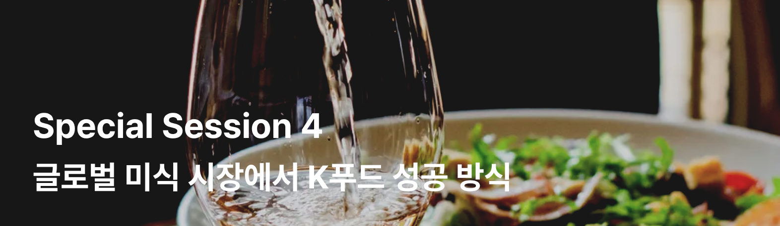 이 세션은 LVMH의 와이너리 전략을 통해, 한국의 K-푸드가 나아가야 할 글로벌 문화 방향을 모색하려고 합니다. 김치, 한식, 전통주, 한과 등은 이미 세계인의 입맛을 사로잡았습니다. 이제는 ‘맛’을 넘어 ‘문화의 경험’으로 확장해야 합니다. K-푸드는 건강식이나 이색음식이 아닌, 한국의 미학과 정서를 담은 하나의 문화 브랜드로 자리매김해야 합니다.